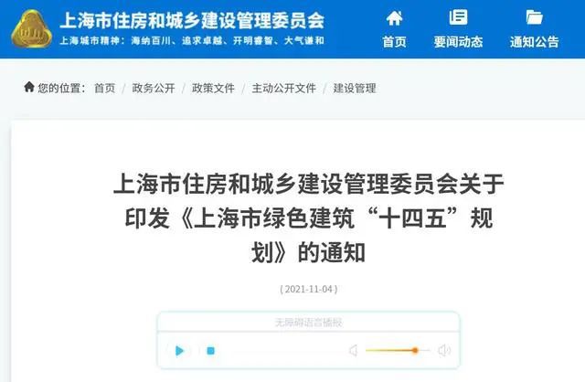 地方政策上海市綠色建筑“十四五”規(guī)劃:低能耗建筑示范項目不少于500萬平方米