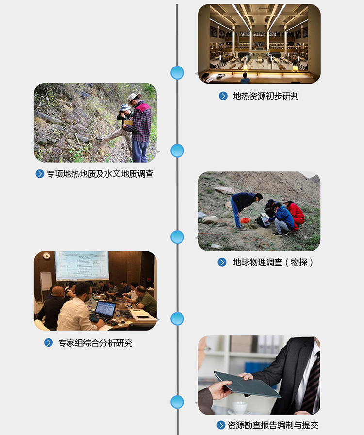 地熱(溫泉)勘查,是了解項目區(qū)是否具備溫泉成礦條件、建立項目區(qū)溫泉資源成礦模型、對項目區(qū)地熱資源情況進行的資源評價,可以有效地降低地熱(溫泉)開發(fā)項目風險。獲取地熱資源開發(fā)利用最大的社會經濟效益和環(huán)境效益,并最大程度的保持資源的可持續(xù)利用。