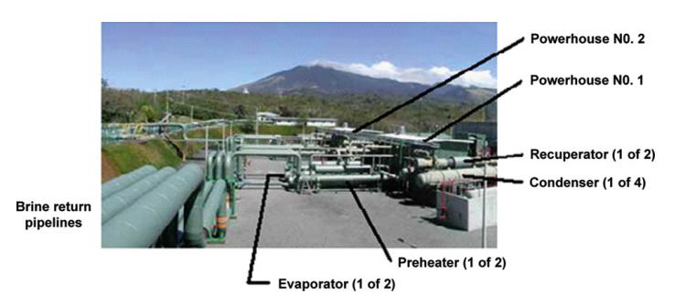 米拉瓦列斯的五號(hào)發(fā)電機(jī)組是2004年剛投入使用的。這個(gè)發(fā)電機(jī)利用從一號(hào)和二號(hào)和三號(hào)發(fā)電機(jī)組中的廢棄鹵水,通過注入井來獲取了可能回到熱儲(chǔ)層中的能量。總共的發(fā)電量是15.5MW,發(fā)電機(jī)組中的每一個(gè)發(fā)電單元都發(fā)出7.75MW的電。每一個(gè)發(fā)電單元是有兩個(gè)渦輪組成的,驅(qū)動(dòng)同一個(gè)發(fā)電機(jī)。循環(huán)工質(zhì)是常規(guī)的正戊烷,C5H12。每一個(gè)單元用兩個(gè)預(yù)熱器。兩個(gè)蒸發(fā)器跟他們各自的分隔板。兩個(gè)回?zé)崞鳎膫€(gè)水冷凝器。這個(gè)發(fā)電機(jī)組是有澳瑪特(Ormat)提供的。