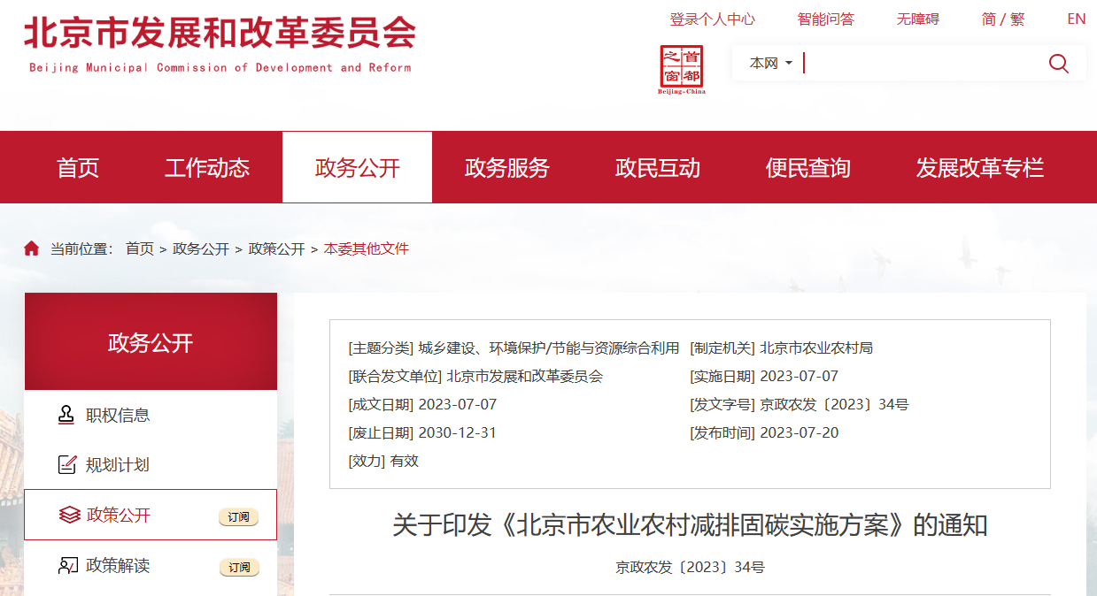 7月18日,北京市農(nóng)業(yè)農(nóng)村局關(guān)于印發(fā)《北京市農(nóng)業(yè)農(nóng)村減排固碳實施方案》的通知。