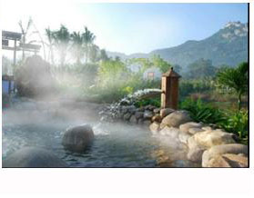 河南省欒川九龍山溫泉風(fēng)景 九龍山溫泉泉水恒溫69.5℃,時(shí)流量56噸,水中富含鉀、鎂、鈣、鍶、鋰等27種礦物質(zhì),微含惰性氣體氡和放射性元素鐳,對(duì)風(fēng)濕、類風(fēng)濕、心腦血管病后遺癥及婦科、皮膚科常見病的浴療效果顯著,被譽(yù)為中原第一泉。