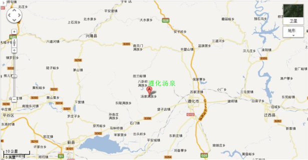 圖1 河北省遵化湯泉地理區(qū)域