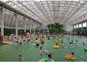 江蘇省洪澤縣老子山溫泉風(fēng)景 溫泉陽光浴場展示出亮麗的南國風(fēng)情,分布大型泳池和品類各異的水療、魚療、花藥浴、泥巴浴,不僅具有神奇的理療保健作用,還兼?zhèn)渑哦攫B(yǎng)顏、美白肌膚、調(diào)理身心等多重功效,享有蘇北熱海、澤國仙境、華東首席溫泉度假區(qū)之美譽(yù)。