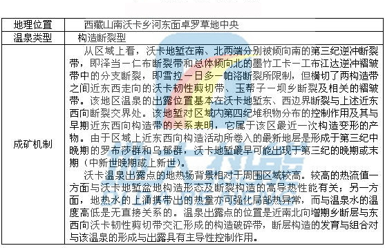 西藏沃卡溫泉成礦機制![]() ![]() 西藏沃卡溫泉形成機制圖 |